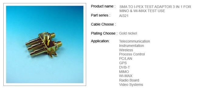 SMA TO I-PEX TEST ADAPTOR 3IN1 FOR MINO & Wi-MAX TEST USE
