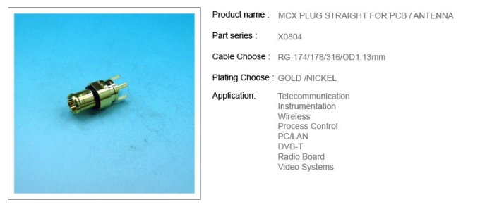 MCX PLUG STRAIGHT FOR PCB / ANTENNA