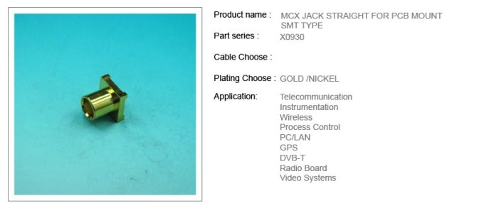 MCX JACK STRAIGHT FOR PCB SMT TYPE