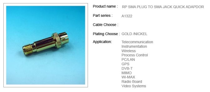 RP SMA PLUG TO SMA JACK QUICK ADAPDOR