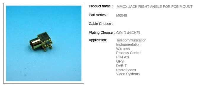 MMCX JACK RIGHT ANGLE FOR PCB MOUNT