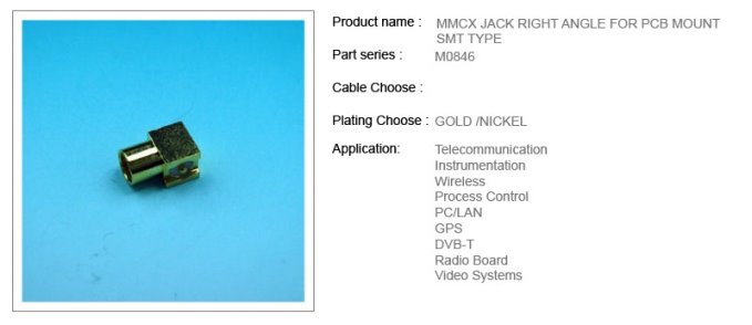 MMCX JACK RIGHT ANGLE FOR PCB MOUNT