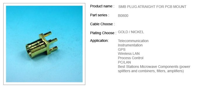 SMB PLUG ATRAIGHT FOR PCB MOUNT